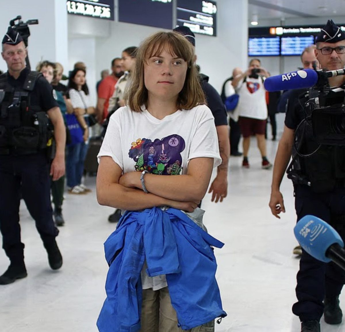 Geçtiğimiz dakikalarda Paris’e inen Thunberg’in ellerinde kelepçe olduğu görüldü.