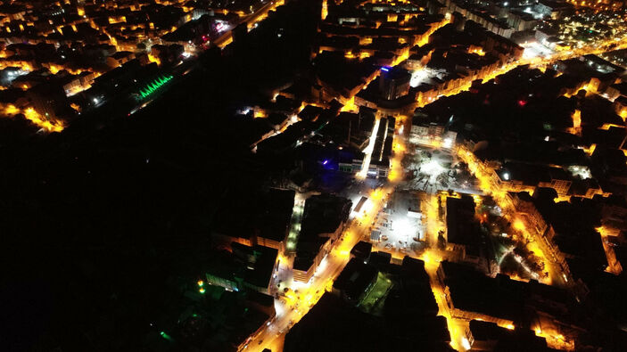 Depremin olumsuzluklarının yaşandığı kente havadan çekilen imgelerde kenti sokak lambalarının aydınlattığı görüldü.